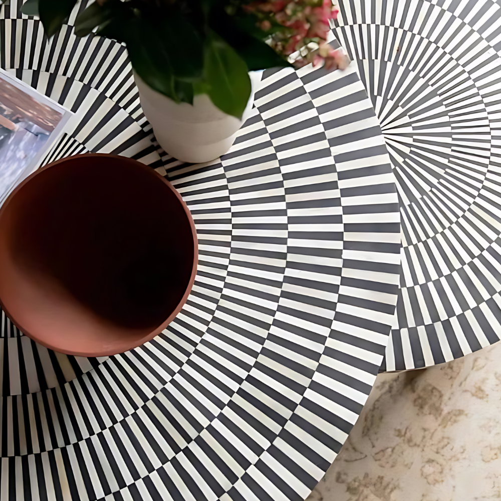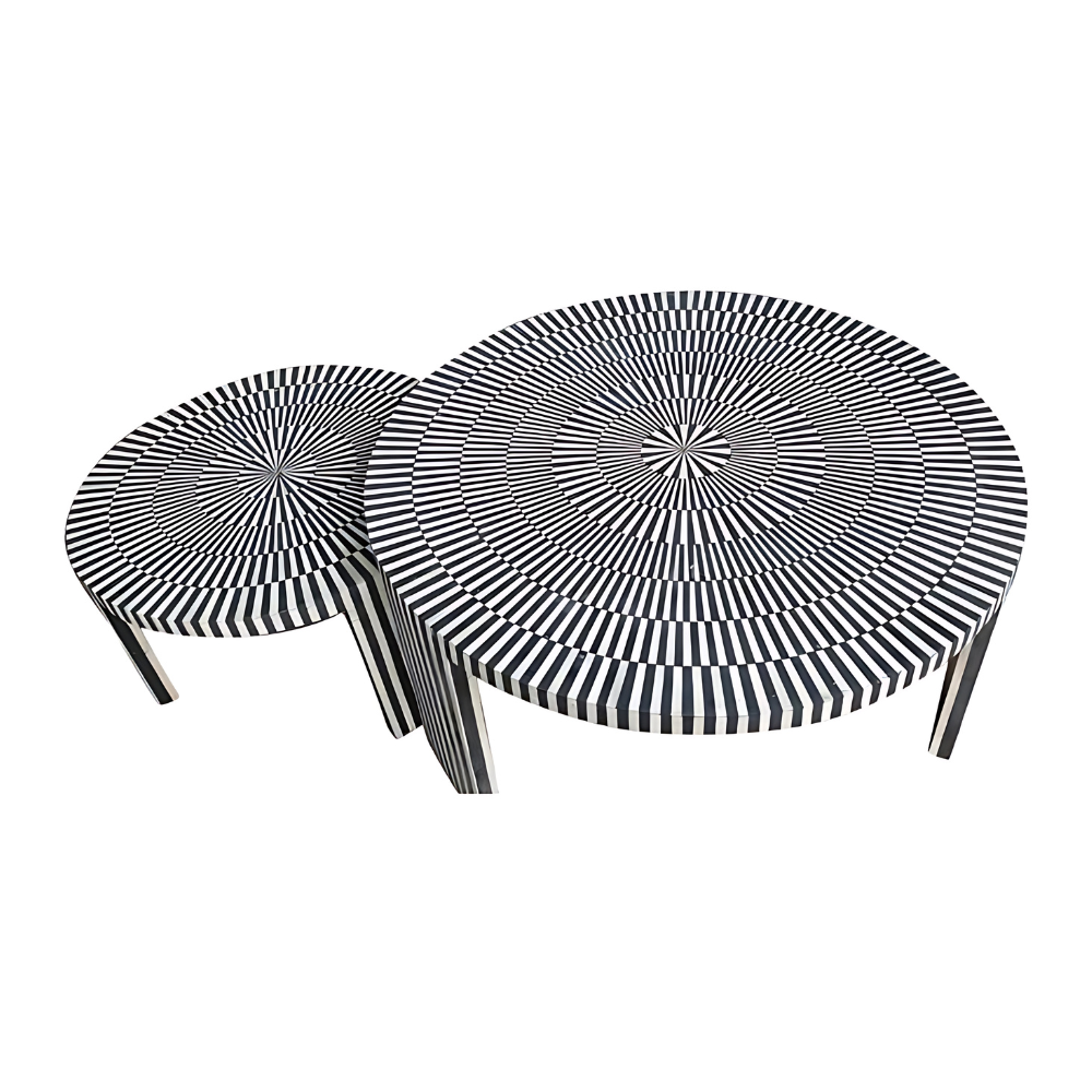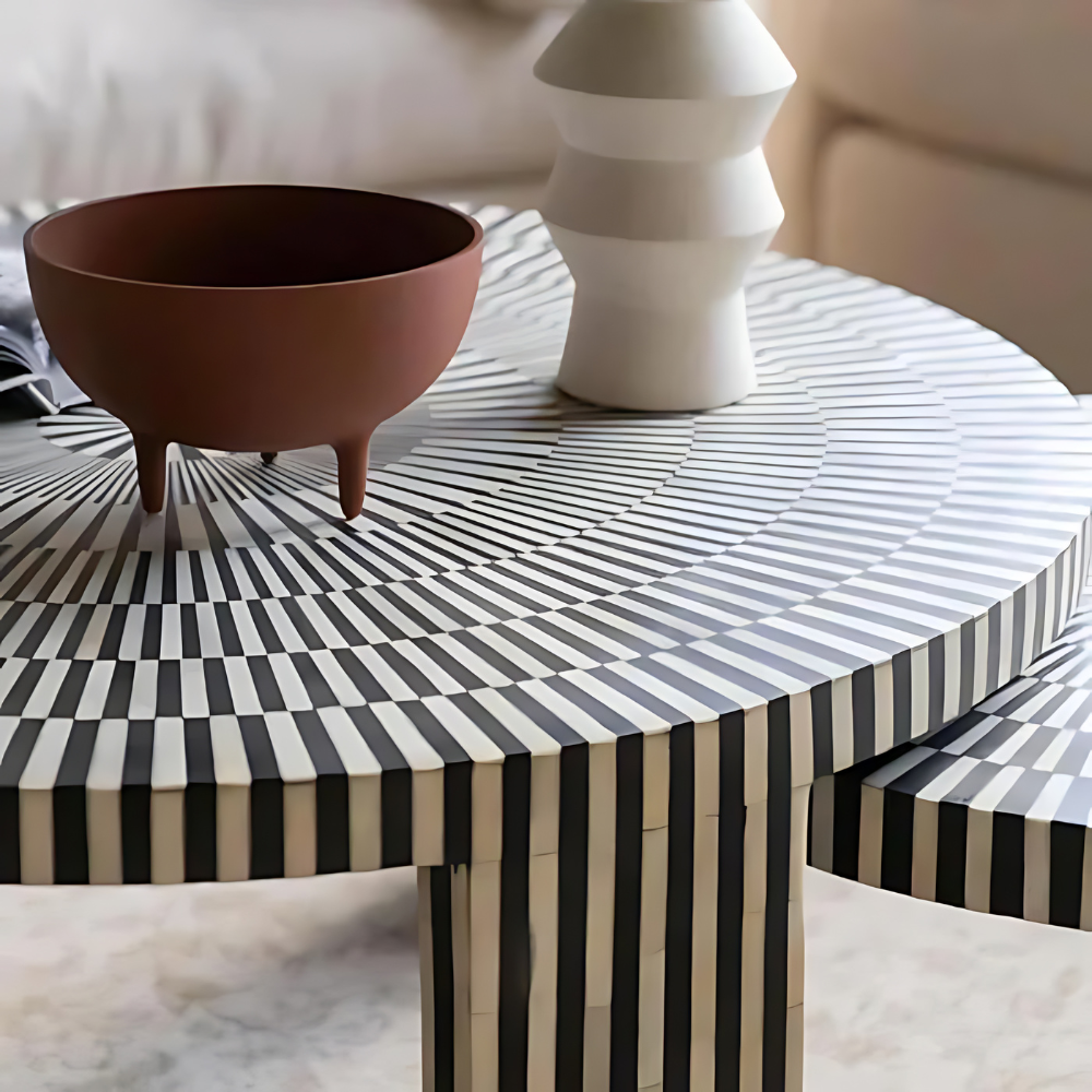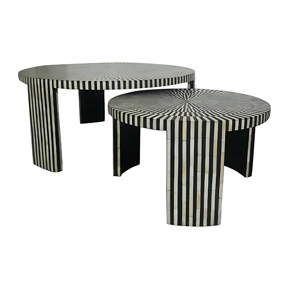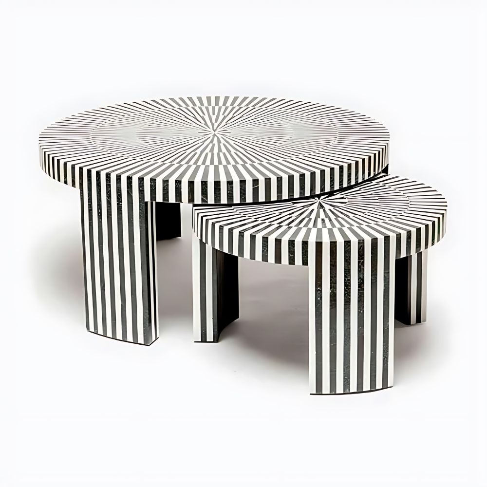 Efficient Refinement Striped Bone Inlay Nesting Coffee Table