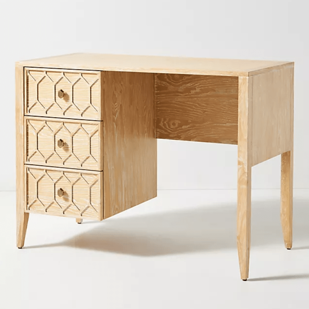 Functional Elegance Hand-Carved Textured Trellis Study Table