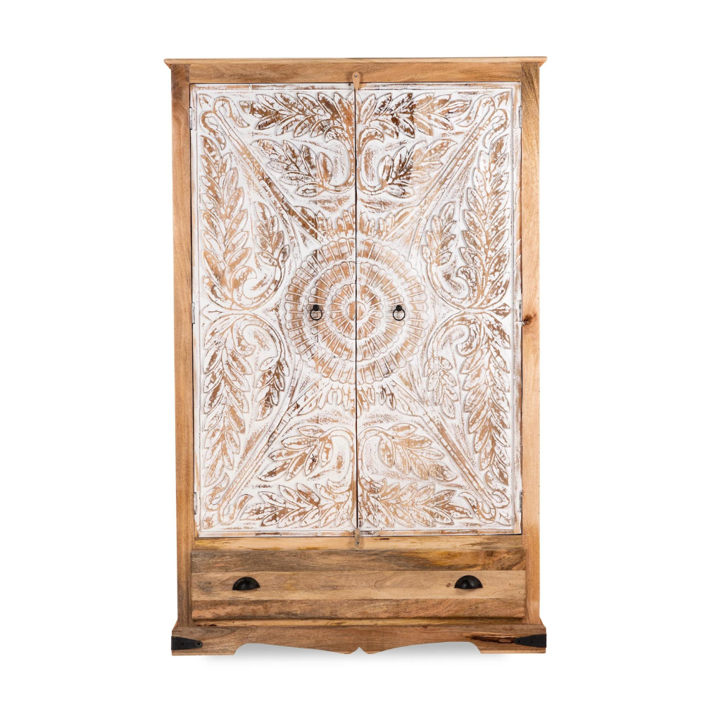 Modish Hand Carved Vandara Style White Washed Wardrobe