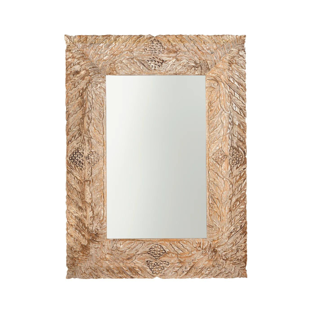 Enriched Existence Hand Carved Vintage Tropical Coconut Tree Leaves Wall Mirror