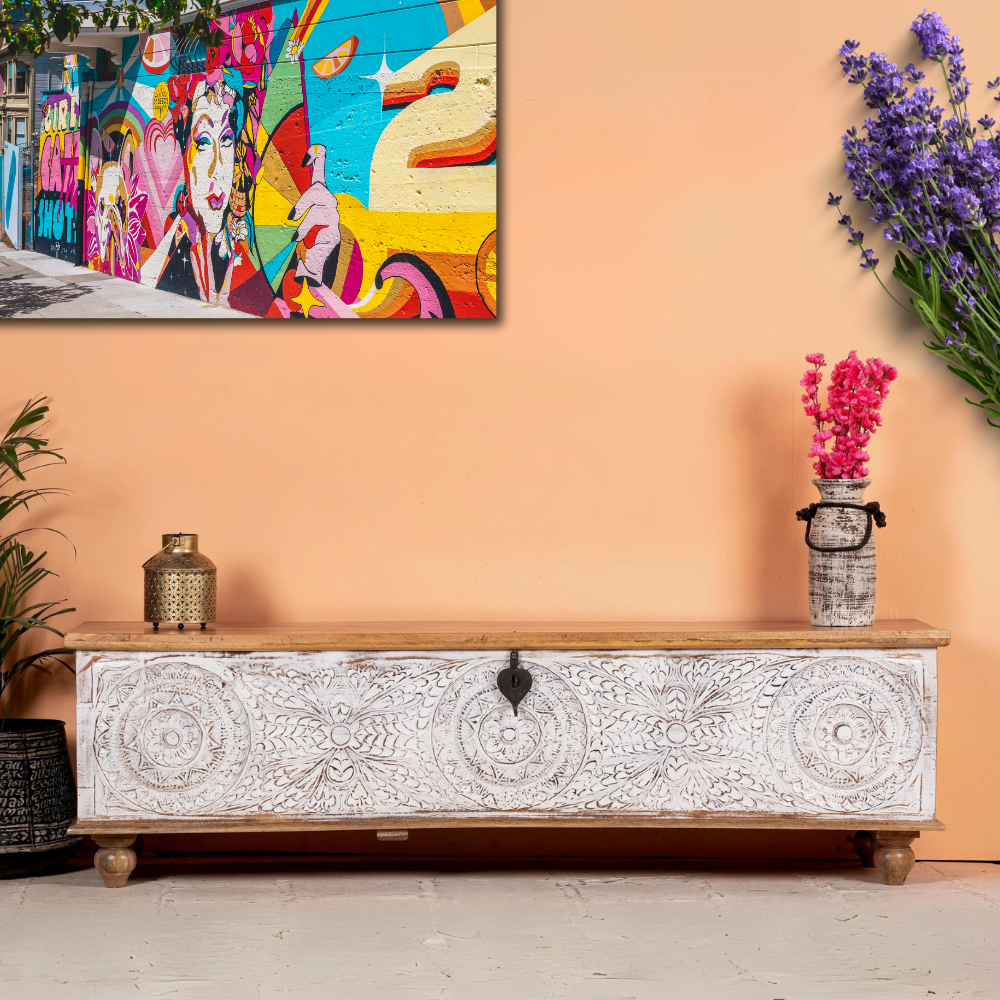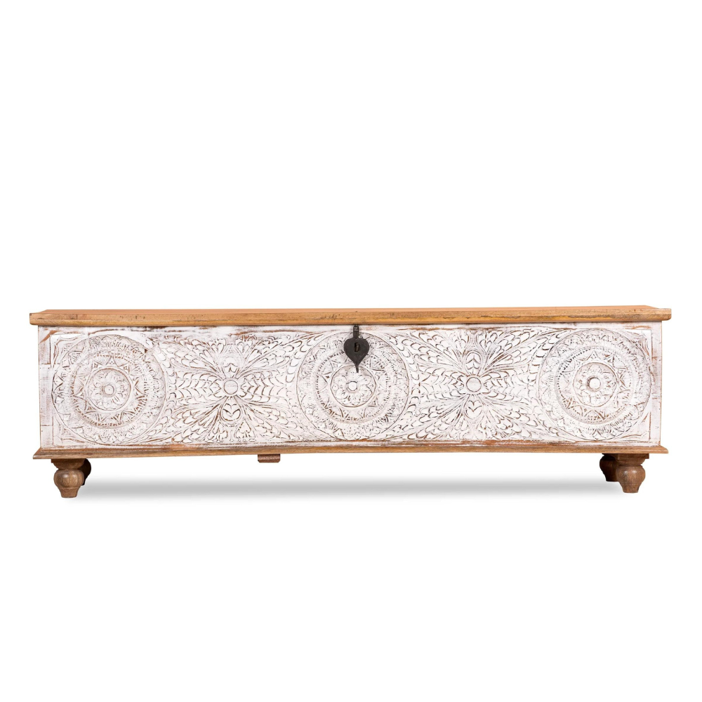Exotic Hand-Carved Wilson White Distressed Trunk Box